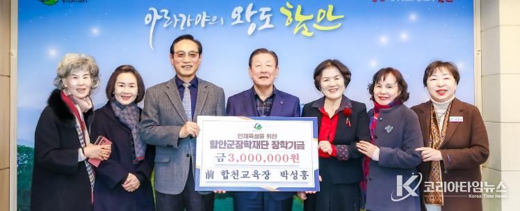코리아타임뉴스 오영주 기자 | 함안군은 법수면 황사리 출신의 박성홍 전 합천교육장이 고향 인재 육성을 위한 장학기금 300만 원을 기탁했다고 밝혔다.