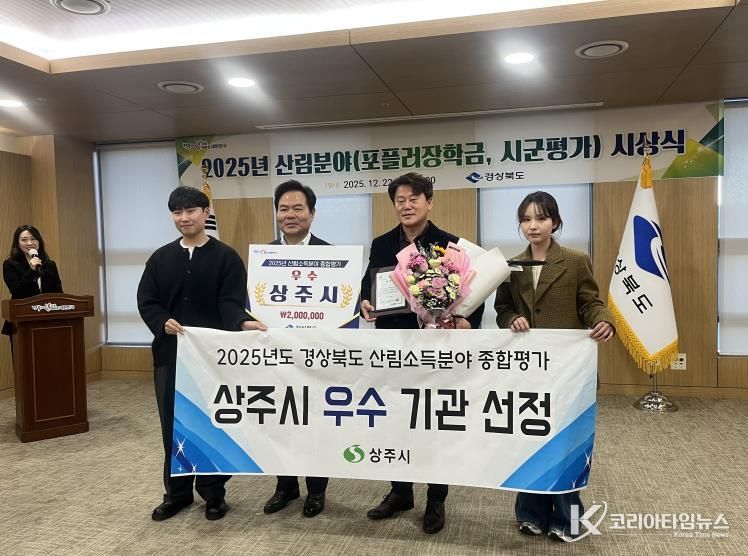 코리아타임뉴스 노승선 기자 | 상주시는 22일 경상북도가 주관한 2025년도 산림소득분야 종합평가에서 우수기관으로 선정돼 우수상을 수상했다.