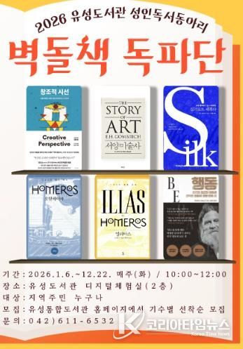 코리아타임뉴스 대전취재본부 | 대전 유성구는 유성도서관에서 깊이 있는 독서 경험과 완독의 성취감을 제공하기 위한 심화 독서동아리 ‘2026 벽돌책 독파단’을 운영한다.
