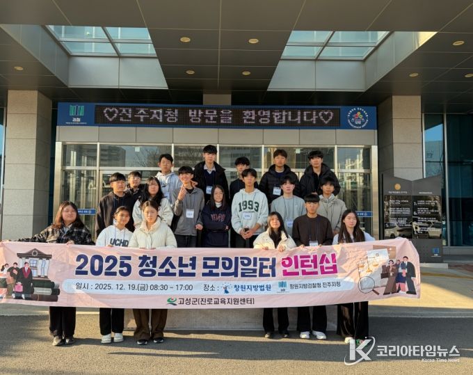 코리아타임뉴스 경남취재본부 | 고성군)은 지난 19일 법조인을 꿈꾸는 관내 중·고등학생 20명이 참여한 '청소년 모의일터 인턴십 프로그램'을 운영해 큰 호응을 얻었다고 밝혔다.