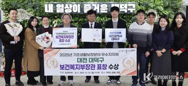 코리아타임뉴스 대전취재본부 | 대전 대덕구는 23일 보건복지부가 실시한 ‘2025년 기초생활보장 분야 사업평가’에서 우수지자체로 선정돼 장관 표창을 받았다.