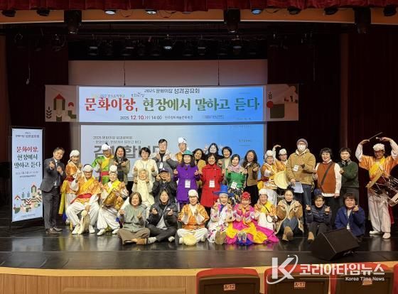 코리아타임뉴스 전북취재본부 | 완주문화재단은 지난 12월 10일, 완주향토예술문화회관에서 '2025 문화이장 성과공유회'를 개최하고 문화이장 1기부터 8기까지의 전체 활동을 돌아보는 자리를 마련했다.