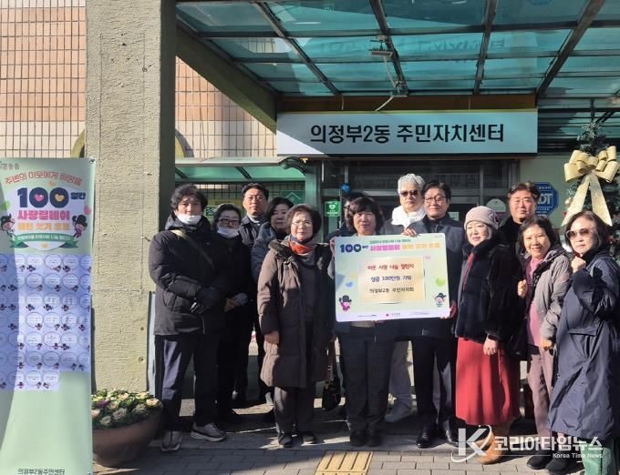 코리아타임뉴스 기동취재팀 | 의정부시 의정부2동주민센터는 12월 22일 의정부2동 주민자치회가 ‘100일간 사랑릴레이 배턴 잇기’에 동참해 취약계층을 위한 성금 100만 원을 전달했다고 밝혔다.
