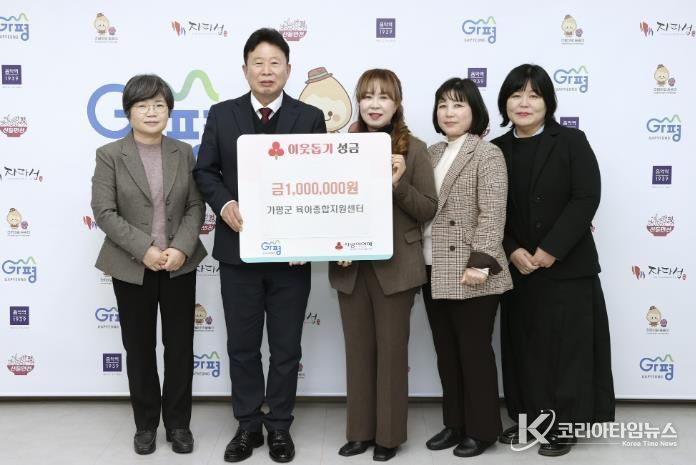코리아타임뉴스 기동취재팀 | 가평군육아종합지원센터는 최근 연말을 맞아 어려운 이웃을 돕기 위해 성금 100만원을 가평군에 기탁했다.