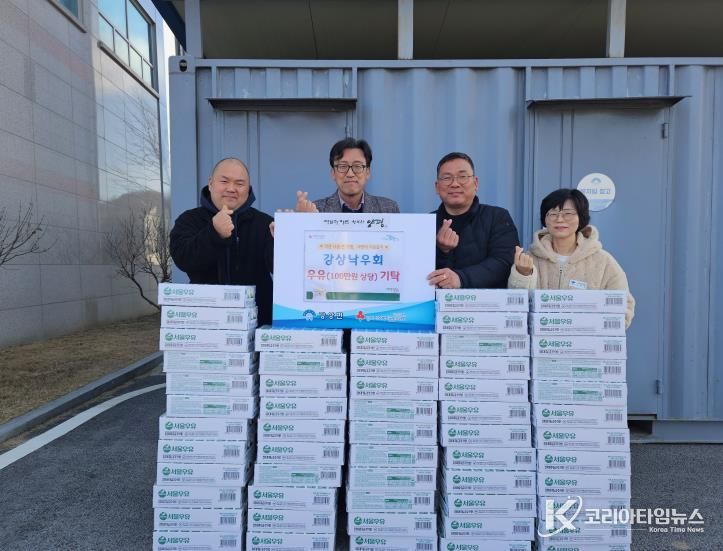 코리아타임뉴스 기동취재팀 | 양평군 강상면은 지난 22일 서울우유강상낙우회가 지역 내 취약계층 가구를 위해 멸균우유 56박스(100만 원 상당)를 기탁했다고 밝혔다.