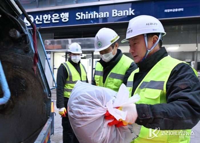 코리아타임뉴스 기동취재팀 | 의정부시는 연말연시를 맞아 12월 23일 환경미화원들의 근무 현장을 방문해 생활쓰레기 수거 활동에 동참하고 현장의 목소리를 청취했다.