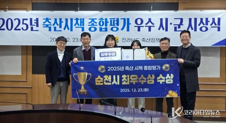 코리아타임뉴스 전남취재본부 | 순천시는 2025년 전라남도 축산시책 종합평가에서 최우수상을 수상했다고 23일 밝혔다.