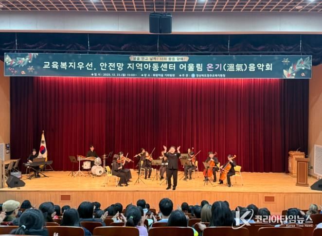 코리아타임뉴스 사회팀 | 경주교육지원청은 12월 22일 경주 관내 지역아동센터 학생을 대상으로 화랑마을에서, 2025 관내 지역아동센터 어울림 온기 음악회를 실시 했다.