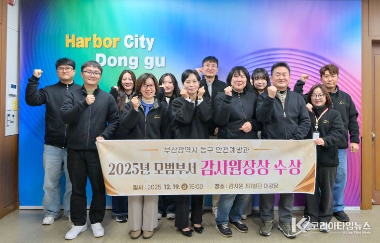 코리아타임뉴스 부산취재본부 | 부산 동구는 안전예방과가 감사원으로부터 모범부서로 선정돼 지난 19일 감사원에서 열린 2025년도 모범사례 포상행사에서 감사원장 표창을 받았다고 밝혔다.