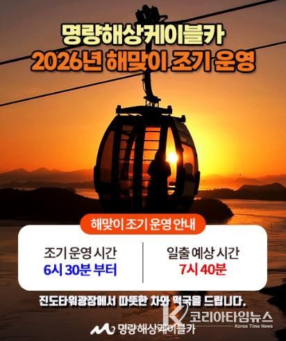 코리아타임뉴스 노승선 기자 | 2026년 새해 첫날, 명량해상케이블카가 해맞이 운행으로 새해의 시작을 알린다.
