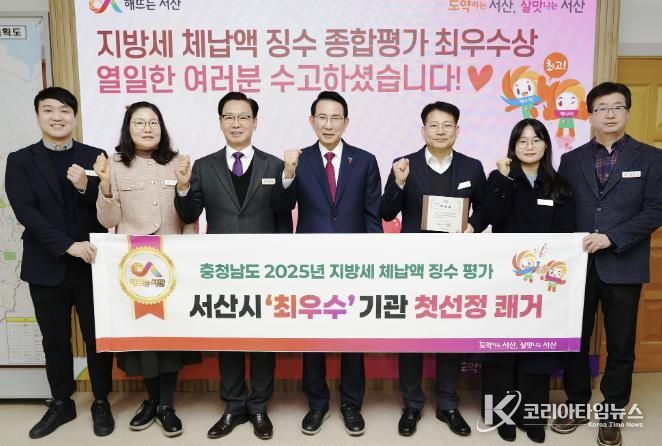 코리아타임뉴스 김택호 기자 | 충남 서산시는 충청남도가 실시한 ‘2025년 지방세 체납액 징수 종합평가’에서 최우수기관으로 선정됐다고 밝혔다.
