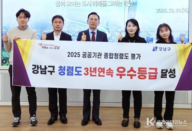 코리아타임뉴스 기동취재팀 | 꿈이 모이는 도시, 미래를 그리는 강남구가 국민권익위원회가 주관한 ‘2025년 공공기관 청렴도 평가’에서 3년 연속 ‘종합청렴도 우수등급’을 받았다.