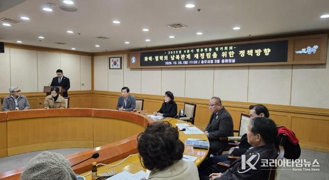 코리아타임뉴스 박찬식 기자 | 민주평화통일자문회의 충주시협의회는 23일 충주시청 중회의실에서 ‘화해·협력의 남북관계 재정립을 위한 정책방향’을 주제로 4차 정기회의를 개최했다.