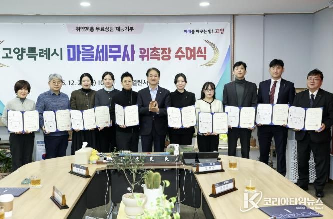 코리아타임뉴스 기동취재팀 | 고양특례시는 지난 23일 열린시장실에서 제5기 마을세무사 운영 유공 세무사를 표창하고 제6기 마을세무사를 위촉했다고 밝혔다.