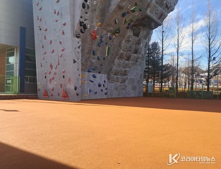 코리아타임뉴스 이아름 기자 | 원주시는 이용자 안전 확보와 쾌적한 체육활동 환경 조성을 위해 종합운동장 내 인공암벽장 바닥을 전면 보수했다.