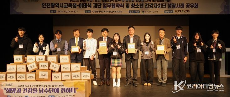 코리아타임뉴스 사회팀 | 인천광역시교육청은 23일 학생교육문화회관에서 ‘2025년 청소년 건강자치단 건강 리더십 교육·성장 사례 공유회’를 열고 사단법인 이태석재단과 업무협약(MOU)을 체결했다.