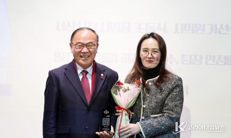 코리아타임뉴스 김택호 기자 | 서산시의회 조동식 의장이 지난 23일 서산시 번화2로 상인회로부터 감사패를 받았다.