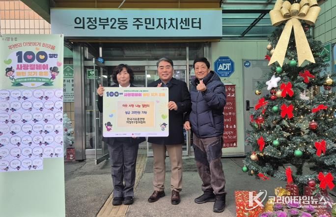 코리아타임뉴스 기동취재팀 | 의정부시 의정부2동주민센터는 12월 23일 한국자유총연맹 의정부2동위원회가 ‘100일간 사랑릴레이 배턴 잇기’에 동참해 취약계층을 위한 성금 20만 원을 전달했다고 밝혔다.