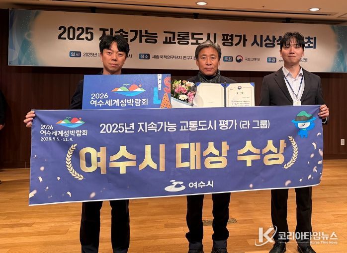 코리아타임뉴스 전남취재본부 | 여수시가 국토교통부에서 주최한 ‘2025년도 지속가능 교통도시 평가’에서 전국 1위인 대상 기관으로 선정됐다.