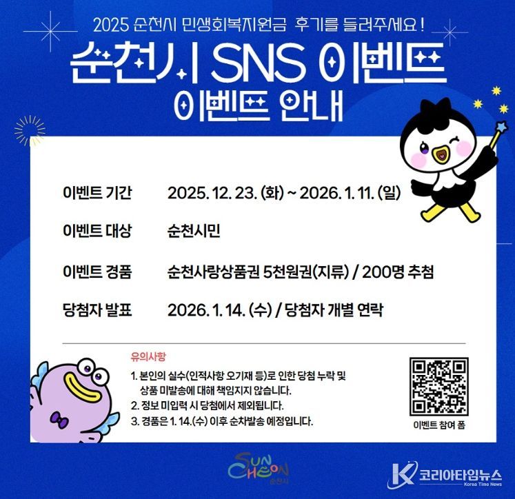 이벤트는 오는 2026년 1월 11일까지 진행되며, 순천시민 누구나 참여할 수 있다.