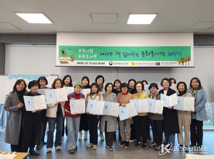 코리아타임뉴스 경기취재본부 | 부천시립수주도서관은 지난 17일 ‘2025 책 읽어주는 문화봉사단’의 활동을 마무리하고, 사업 성과 공유회와 해단식을 개최했다고 밝혔다.