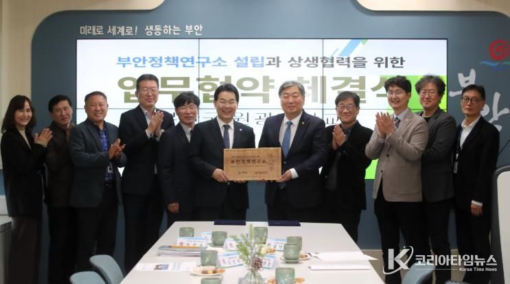 코리아타임뉴스 전북취재본부 | 부안군은 24일 원광대학교와 함께 대학 내에 부안정책연구소 사무실을 설치하고 군정 주요 현안 해결과 중장기 정책 연구 협력을 위한 업무 협약(MOU)을 체결했다고 밝혔다.