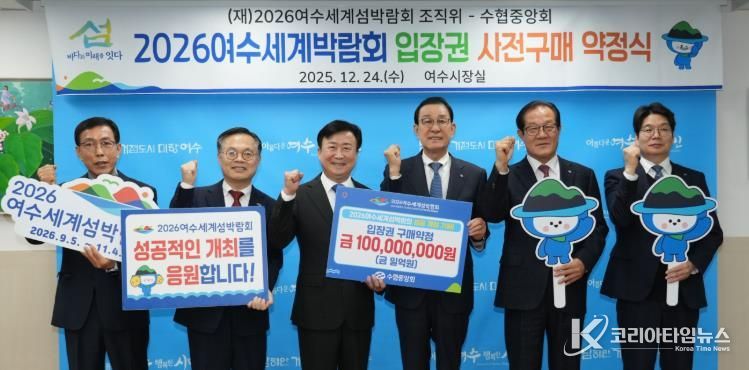 코리아타임뉴스 전남취재본부 | (재)2026여수세계섬박람회조직위원회는 지난 24일, 수협중앙회와 섬박람회 성공개최를 위한 1억 원 규모의 입장권 구매약정을 체결했다고 밝혔다.