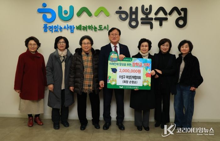 코리아타임뉴스 노승선 기자 | 대구 수성구여성단체협의회는 지난 23일 지역 교육 경쟁력 강화와 미래 인재 육성을 위해 장학금 200만 원을 수성미래교육재단에 기탁했다.