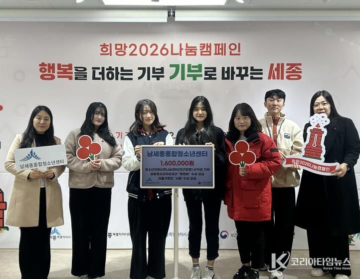 안종배 남세종종합청소년센터장은 “청소년들이 스스로 기획하고 실행한 활동이 기부로 이어지는 경험을 통해 스스로 한 단계 더 성장할 수 있었을 것”이라며 “앞으로도 청소년이 주도하는 사회공헌 활동이 더욱 확대될 수 있도록 지원하겠다”고 말했다.