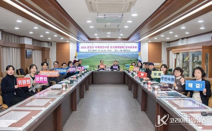 코리아타임뉴스 부산취재본부 | 부산시 금정구는 23일 금정구청 3층 중회의실에서 2025년 금정구 지역현안사업 공론화위원회 결과공유회를 개최하고, 지난 9월 9일 공론화위원회 출범 이후 주민과 전문가가 함께 숙의한 공론화 과정과 정책 제언을 공유했다.
