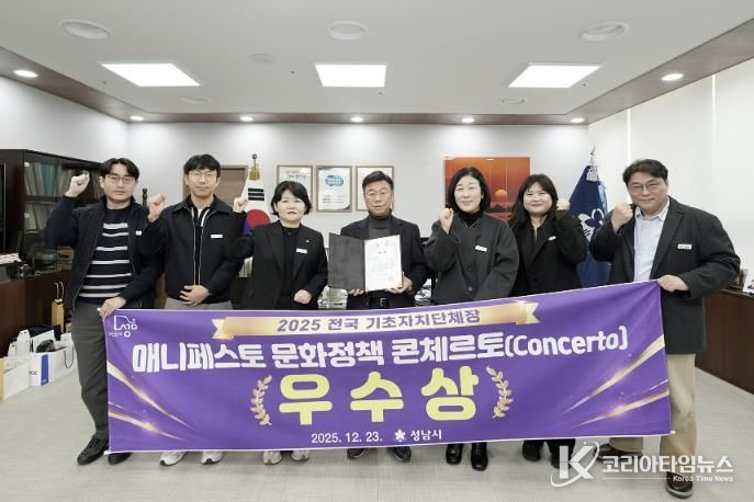 코리아타임뉴스 경기취재본부 | 성남시는 ‘2025 전국 기초자치단체장 매니페스토 문화정책 콘체르토(Concerto)’ 대회에서 신인 예술인 등용문인 ‘성남(SN) 탤런트’ 사업 성과를 인정받아 문화 활동 활성화 분야 우수상을 받았다고 26일 밝혔다.