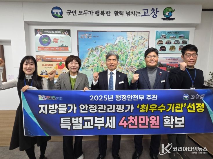 코리아타임뉴스 전북취재본부 | 고창군이 행정안전부 주관 ‘2025년 지방물가 안정관리 평가’에서 전북 군 단위 가운데 유일하게 최고 등급인 ‘가등급’을 받아 ‘최우수 기관’으로 선정됐다고 26일 밝혔다.