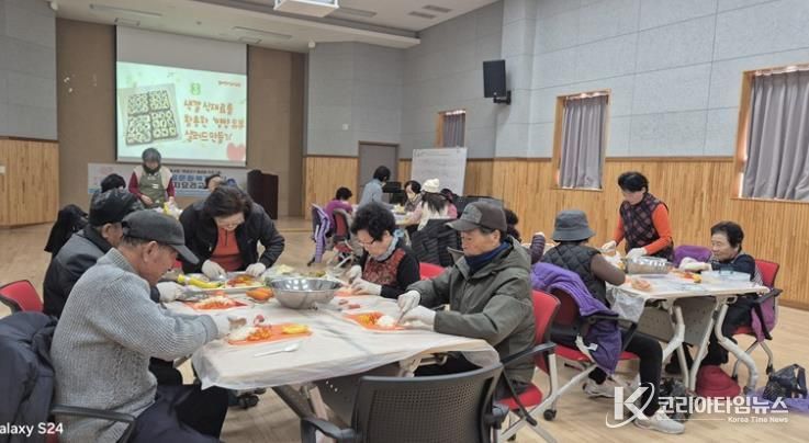 코리아타임뉴스 전북취재본부 | 부안군 농어촌종합지원센터는 청자골문화복지센터에서 보안면 어르신 48명을 대상으로 실버인지요리교육을 총 18회차를 운영해 성공적으로 마무리했다고 밝혔다.