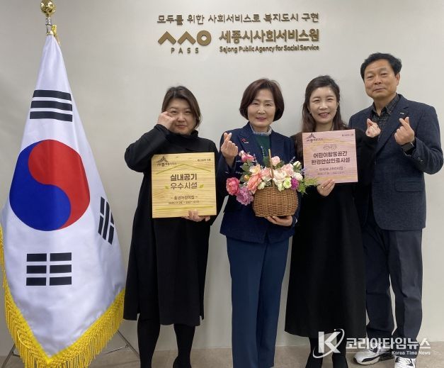 코리아타임뉴스 세종취재분부 | 세종시사회서비스원(원장 김명희)이 운영하는 충녕어린이집과 반곡하나어린이집이 세종특별자치시로부터 지난 19일 ‘2025년 실내 공기질·어린이활동공간 우수시설’로 지정됐다.