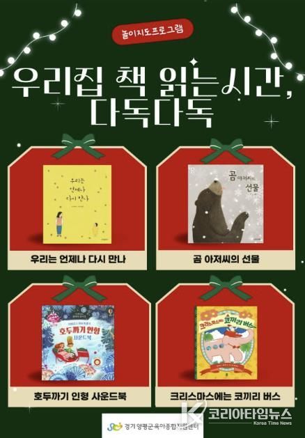 코리아타임뉴스 기동취재팀 | 양평군육아종합지원센터는 연말을 맞아 관내 영유아 가정을 대상으로 가정에서 실천할 수 있는 부모교육과 놀이·독서 연계 프로그램을 운영했다.