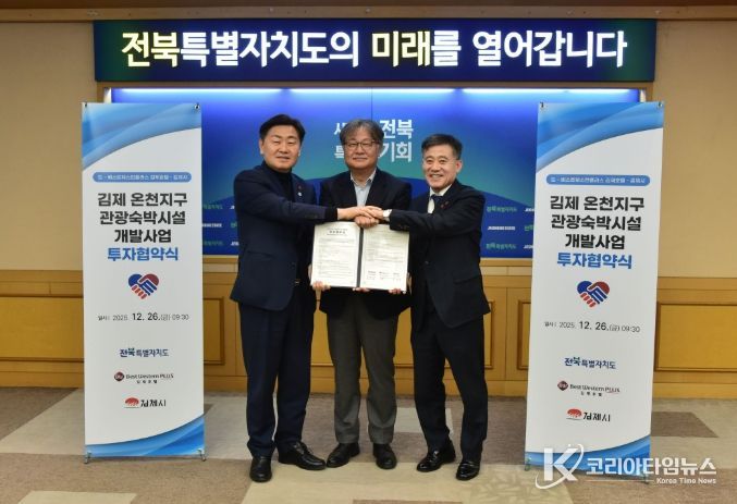시는 26일 전북특별자치도청 도지사 회의실에서 전북특별자치도, ㈜베스트웨스턴플러스 김제호텔(대표 김해영)과 함께 김제 온천지구 관광숙박시설 개발사업을 위한 투자협약을 체결했다고 밝혔다.