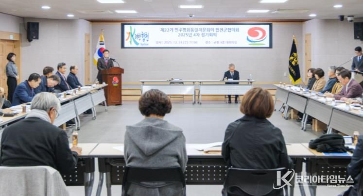 코리아타임뉴스 경남취재본부 | 민주평화통일자문회의 합천군협의회는 12월 24일 합천군청 대회의실에서 40여명이 참석한 가운데 ‘화해·협력의 남북관계 재정립을 위한 정책방향’을 주제로 2025년 4차 정기회의를 개최했다.