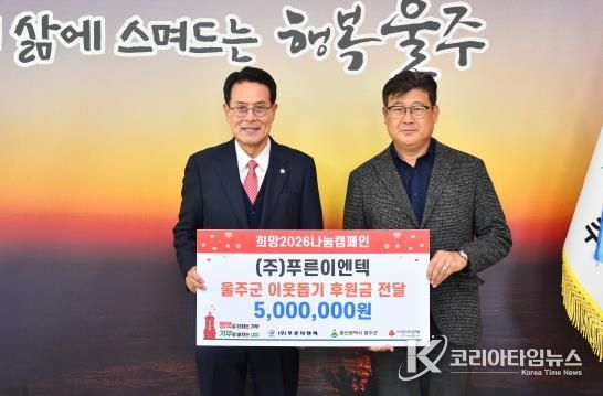 코리아타임뉴스 울산취재본부 | ㈜푸른이엔텍이 26일 울주군에 지역 저소득층을 돕기 위한 성금 500만원을 전달했다.