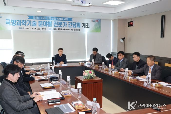 코리아타임뉴스 박찬식 기자 | 포항시는 26일 포스텍 나노융합기술원에서 미래 신성장 동력 창출을 위한 ‘국방과학기술 분야별 전문가 간담회’를 개최하고, 지역 산업과 연계한 국방과학기술 신산업 육성 전략을 논의했다.