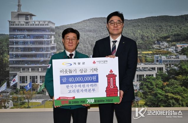 코리아타임뉴스 부산취재본부 | 부산 기장군은 지난 24일 한국수력원자력(주) 고리원자력본부(본부장 이상욱)가 관내 저소득 취약계층을 위해 이웃돕기 성금 4,000만원을 기탁했다고 26일 밝혔다.