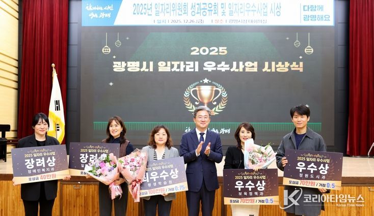 코리아타임뉴스 경기취재본부 | 광명시는 지난 26일 시청 대회의실에서 ‘일자리위원회 성과공유회 및 2025년 일자리 우수사업 시상식’을 열고, 한 해 동안 추진해 온 일자리 정책의 성과를 공유했다.