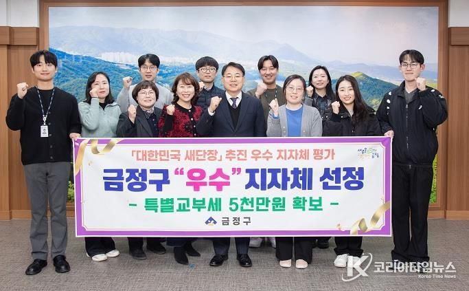 코리아타임뉴스 부산취재본부 | 부산시 금정구는 지난 22일 행정안전부(자치행정과) 주관 '대한민국 새 단장'우수 지자체 평가에서 시·군·구 “우수”지자체로 선정됐다고 밝혔다.