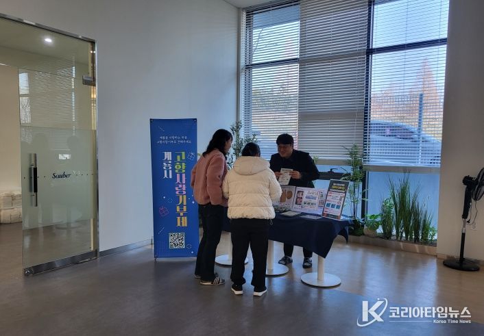코리아타임뉴스 충남취재본부 | 계룡시는 연말을 맞아 ㈜자우버, 계룡대근무지원단, 계룡대 쇼핑타운을 방문해 고향사랑기부제 홍보 활동을 펼쳤다고 밝혔다.
