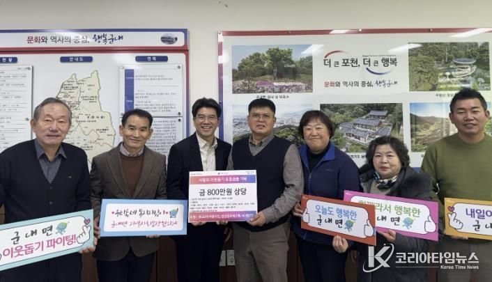 코리아타임뉴스 윤광희 기자 | 포천시 군내면 행정복지센터는 지난 26일 유교2리 마을주민과 청량동축복교회, 김상호 ㈜지앤인 대표가 지역 내 어려운 이웃을 돕기 위한 성금과 쌀을 사회복지공동모금회를 통해 기탁했다고 밝혔다.