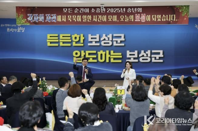 코리아타임뉴스 전남취재본부 | 보성군은 지난 24일 군청 4층 대회의실에서 한 해 동안 군정 발전을 위해 헌신한 공직자들을 격려하고 소통과 화합을 도모하기 위해 ‘모든 순간이 소중한 2025년 송년회’를 개최했다고 밝혔다.