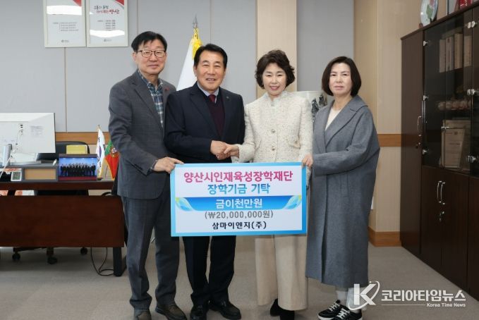 코리아타임뉴스 오영주 기자 | 삼마이엔지(주)(대표 이기홍)가 지난 29일 양산시를 방문해 인재육성장학재단에 장학금 2천만원을 기탁했다.