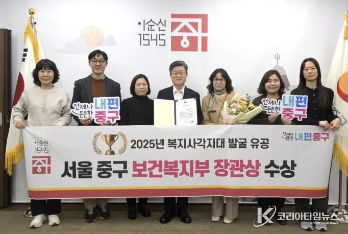 코리아타임뉴스 노승선 기자 | 서울 중구가 보건복지부 주관 ‘2025년 사회보장정보시스템 구축 및 운영평가’에서 ‘복지사각지대 발굴 분야’ 우수기관으로 선정돼 보건복지부 장관상을 수상했다.