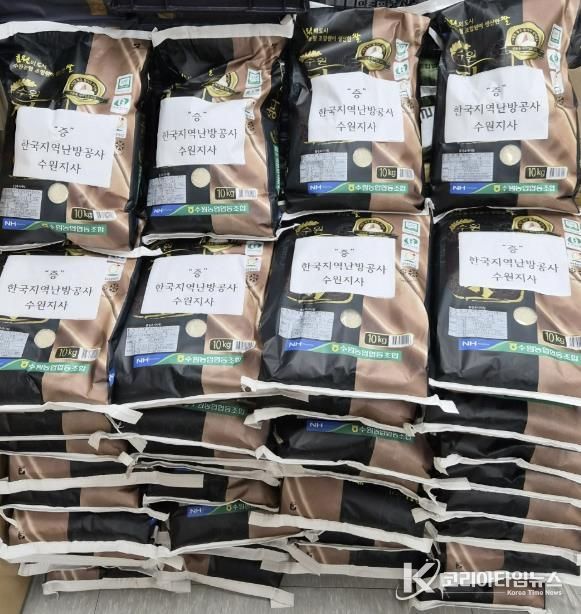 코리아타임뉴스 사회팀 | 지난 29일 한국지역난방공사 수원지사는 지역사회 어르신들을 위한 나눔 활동의 일환으로 광교1동 21개소 경로당에 쌀 42포를 기부했다.