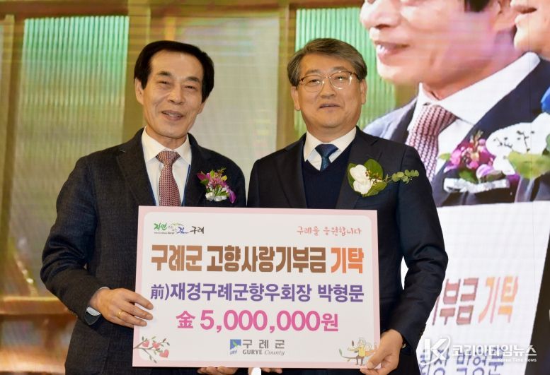 코리아타임뉴스 전남취재본부 | 구례군은 ㈜녹십초 회장이자 제16대 재경구례군향우회장을 역임한 박형문 회장이 고향사랑기부금 500만원을 구례군에 기탁했다고 밝혔다.