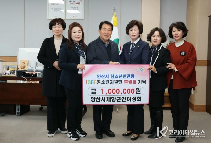 코리아타임뉴스 오영주 기자 | 양산시 재향군인여성회(회장 전정애)는 30일 양산시를 방문해 후원금 100만 원을 양산시청소년상담복지센터 1388청소년지원단에 기탁했다.